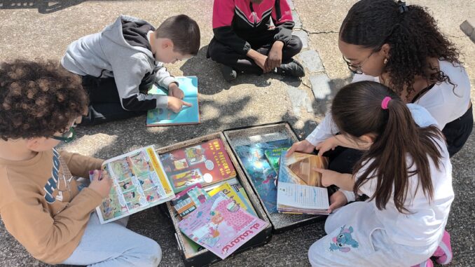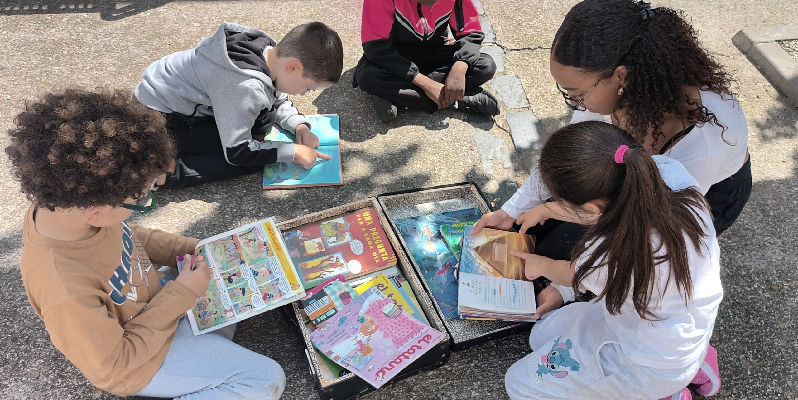 Els nens i nenes de 2n de primària ens han retornat les dues maletes plenes de llibres que hem llegit i comentat junts durant tot curs. Ja les tenim apunt pel proper viatge que serà l’inici del curs 25- 26. Els estudiants de 4ESO han regalat a cadascun dels petits lectors un punt de llibre perquè no oblidin que l’estiu també és temps de lectura.